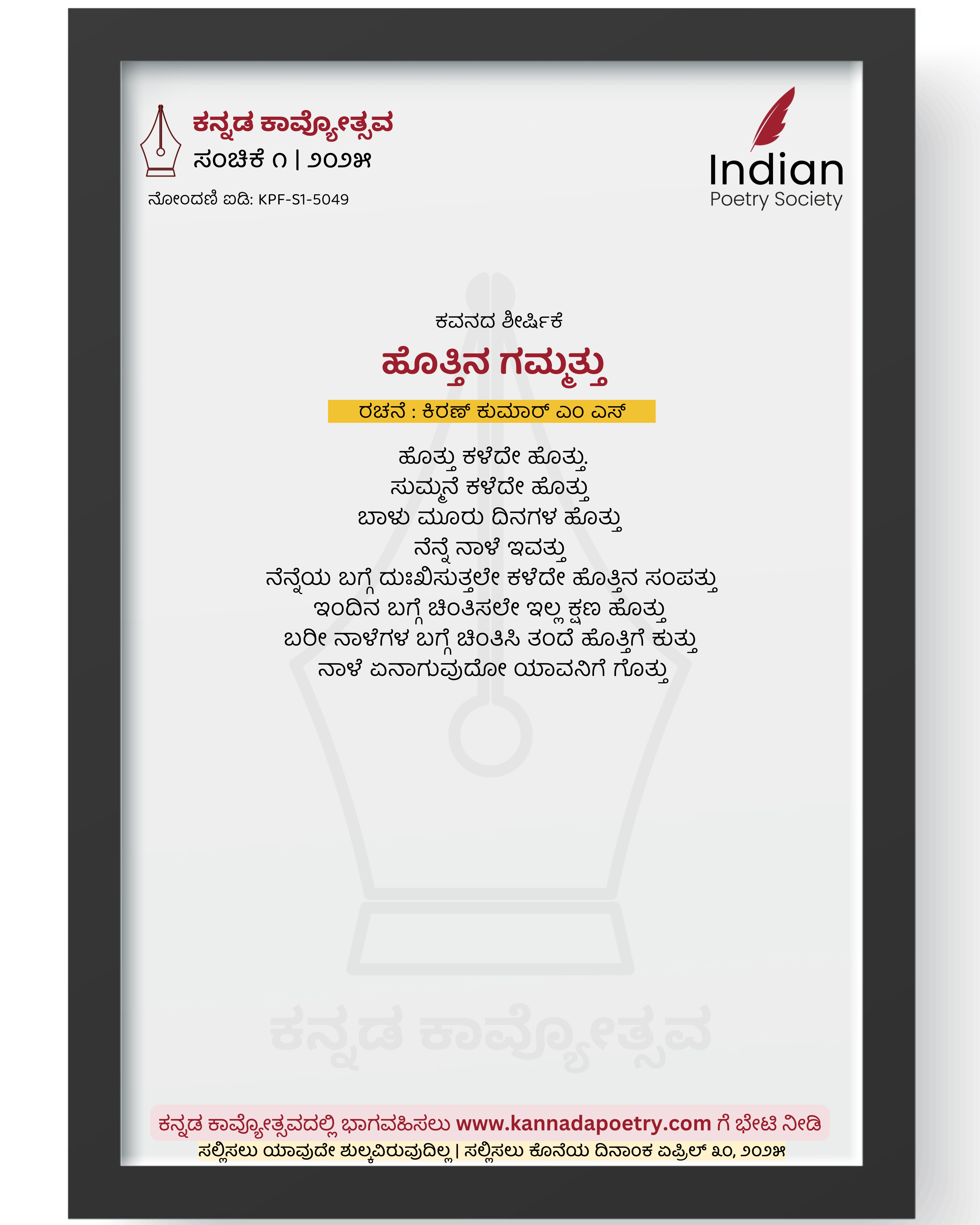 ನೋಂದಣಿ ಐಡಿ : KPF-S1-5049