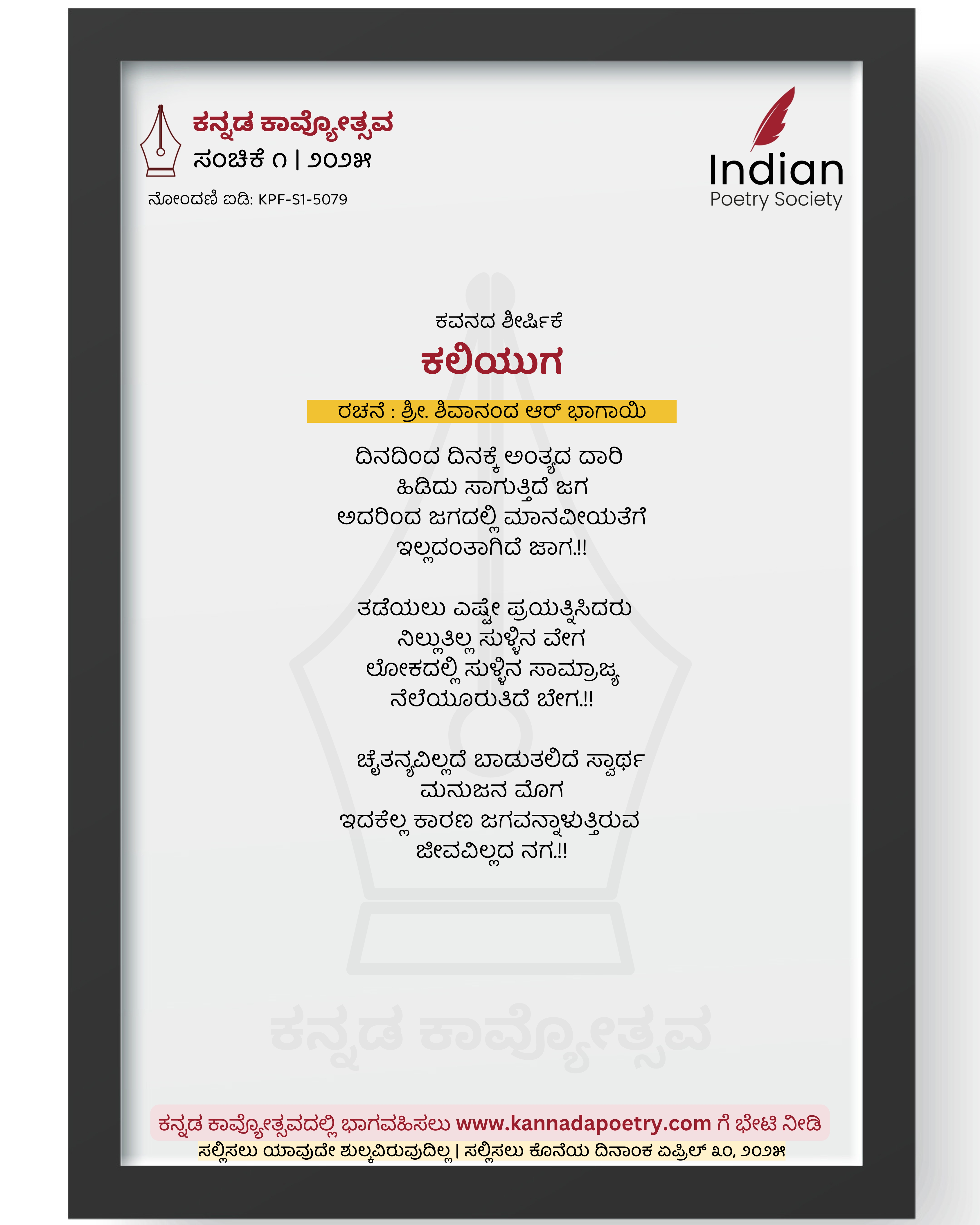 ನೋಂದಣಿ ಐಡಿ : KPF-S1-5079