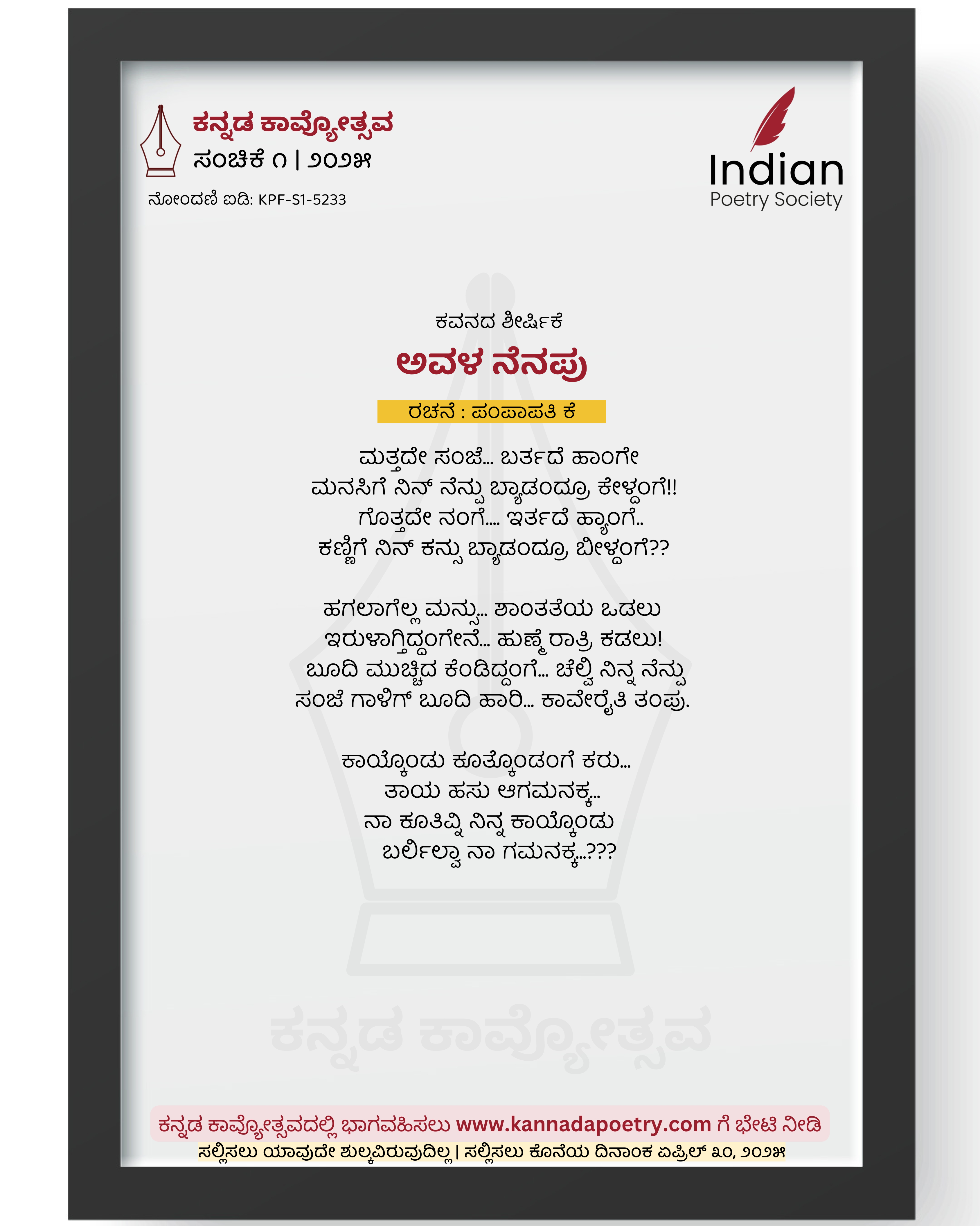 ನೋಂದಣಿ ಐಡಿ : KPF-S1-5233