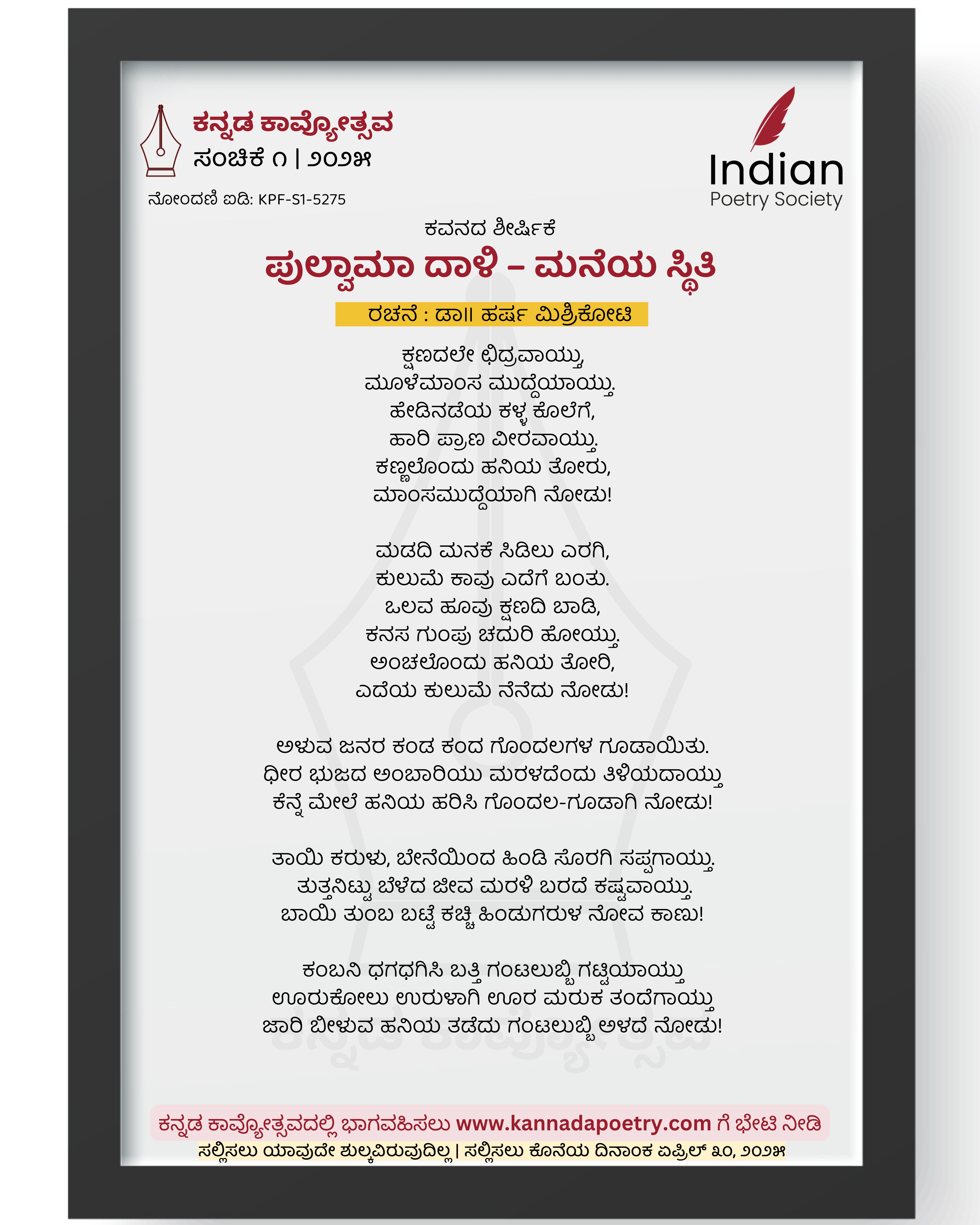 ನೋಂದಣಿ ಐಡಿ : KPF-S1-5275