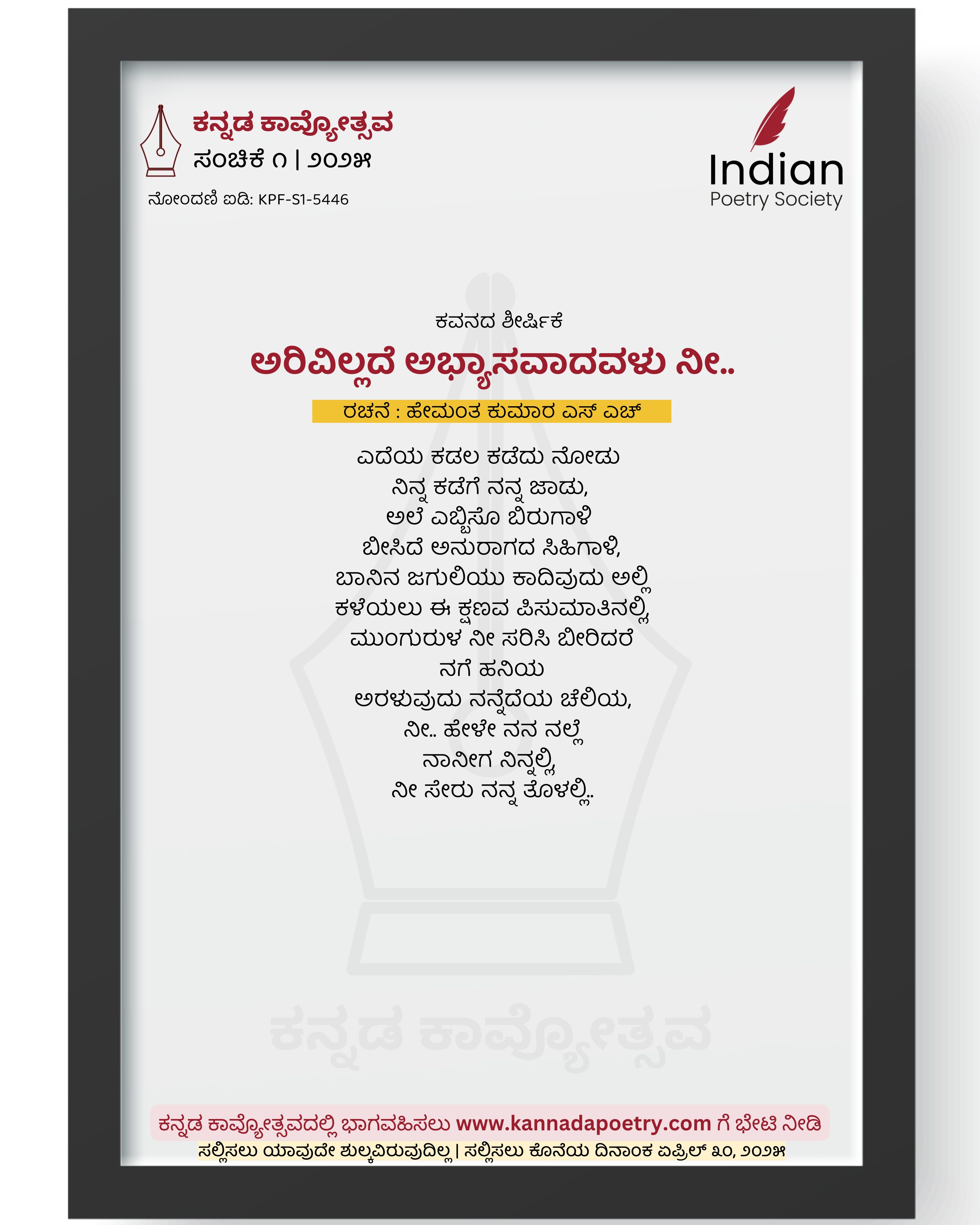 ಅರಿವಿಲ್ಲದೆ ಅಭ್ಯಾಸವಾದವಳು ನೀ..